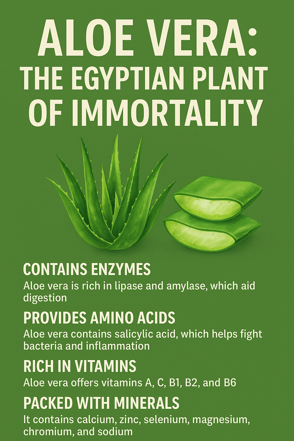 With its enzymes, vitamins, minerals, and healing compounds, aloe vera truly lives up to its name as the plant of immortality. Regular use—whether applied topically or taken internally—can support better health and vitality, just as the ancient Egyptians believed.